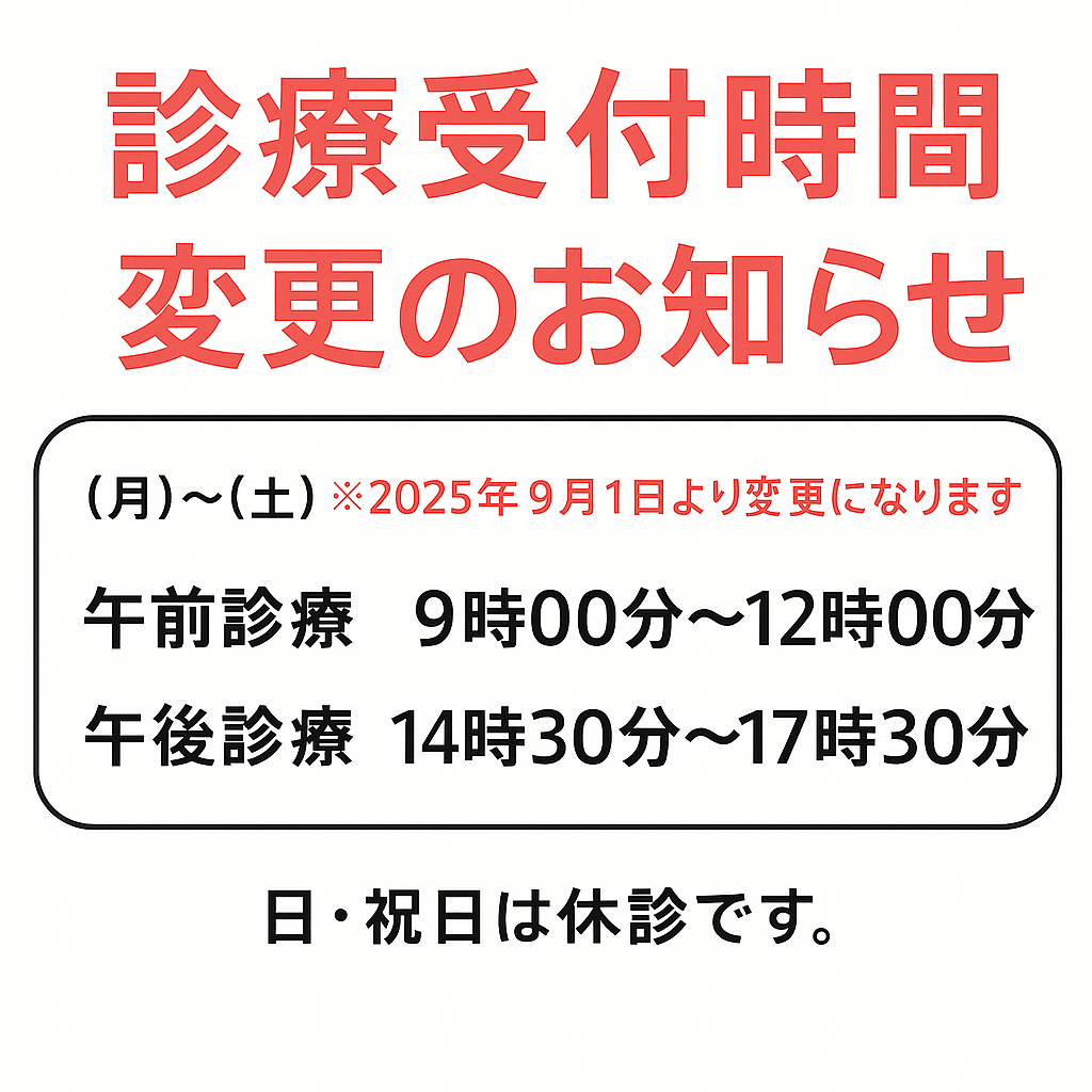 診療受付時間 | 月 | 火 | 水 | 木 | 金 | 土 | 日 |