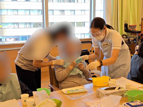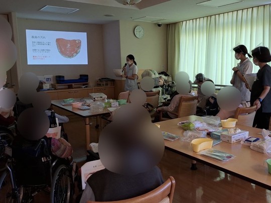 口腔ケアの必要性をお伝えし実践しながら口腔ケアのポイントをお伝えしました。