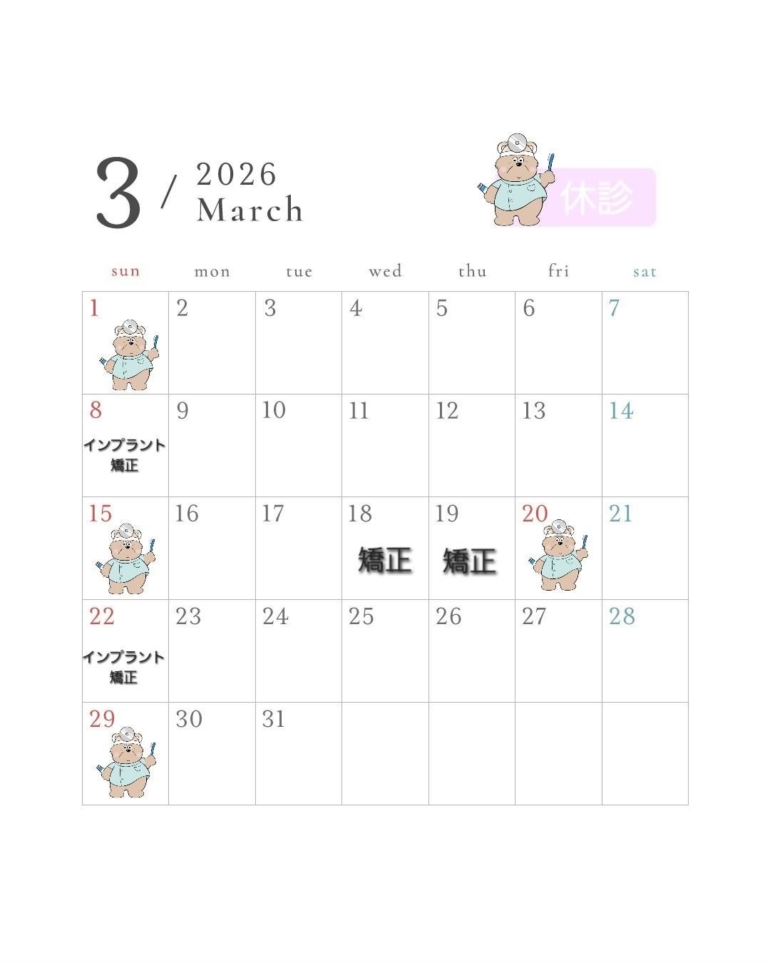 矯正は第1木曜日・第3水曜日の午後と第2・4日曜日に診療(月4回)。