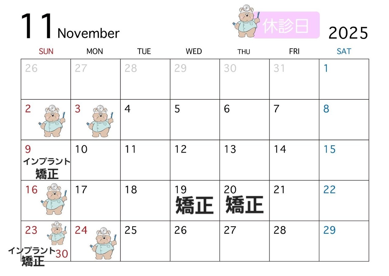 11月の診療日のお知らせです。