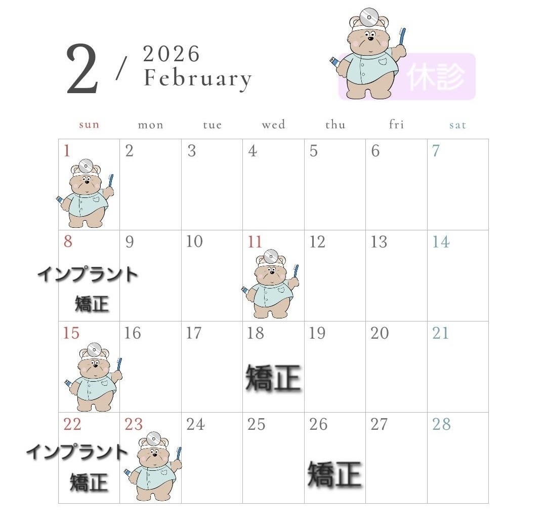 矯正:2月8日(日)・18日(水)・22日(日)・26日(木)