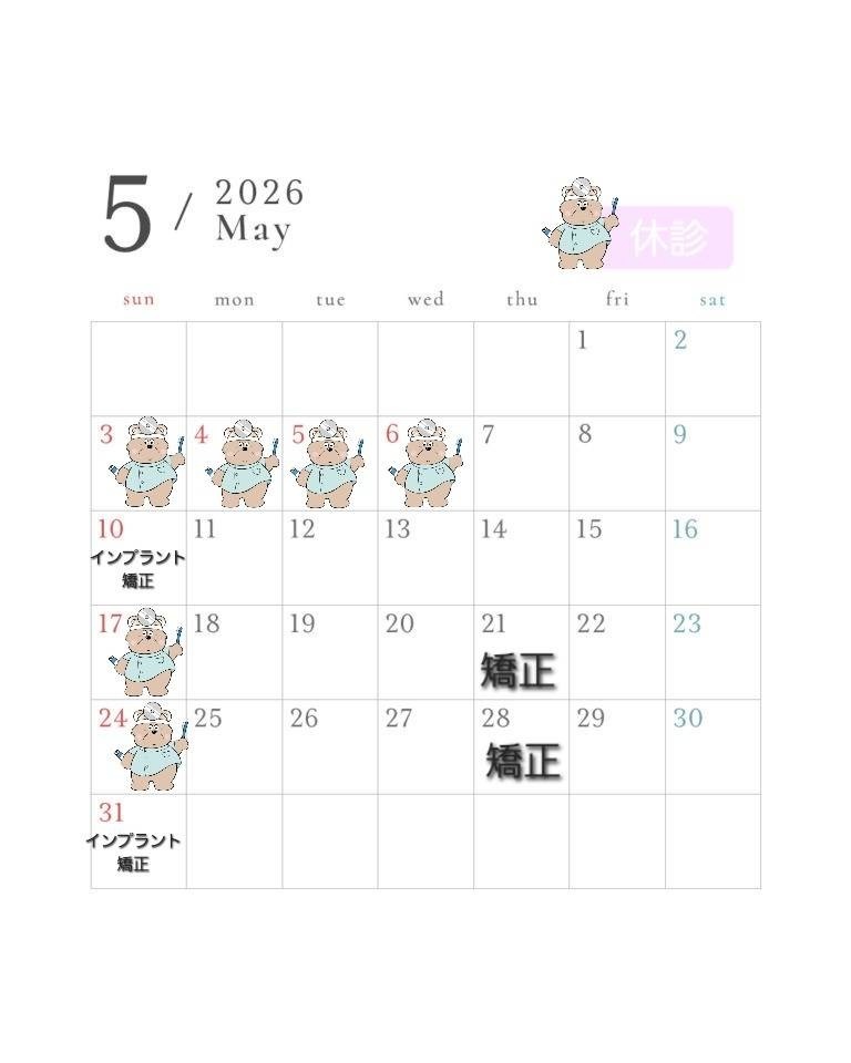 5月の診療日のお知らせです。