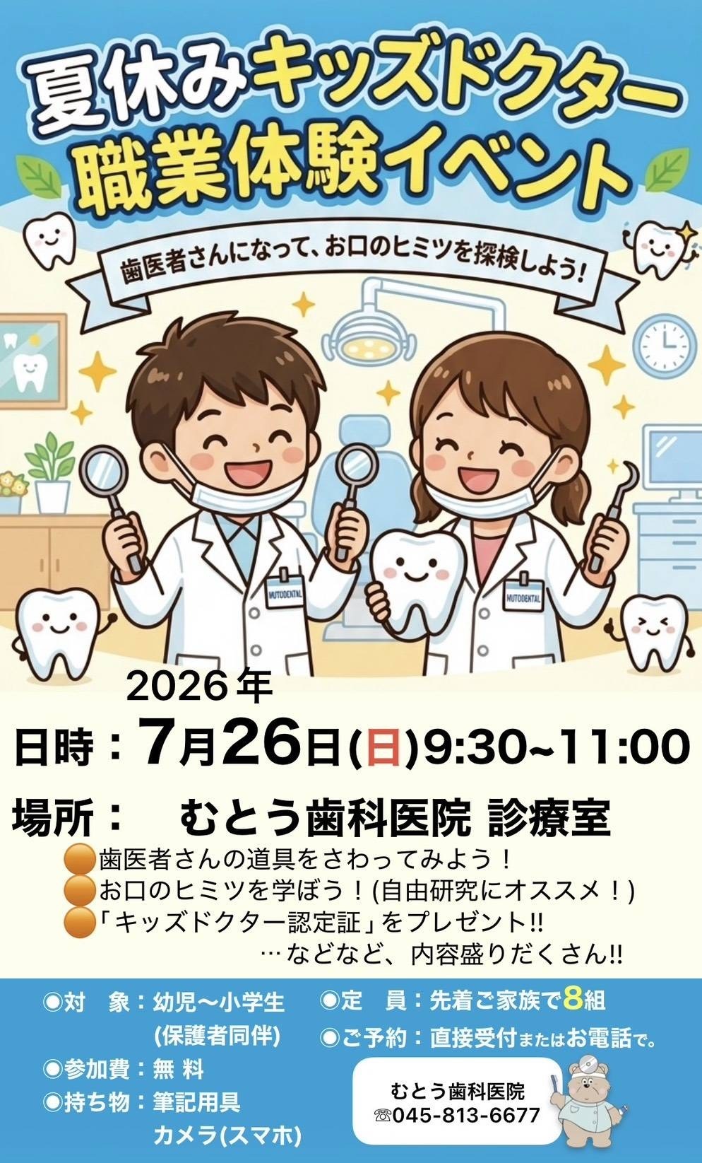 院内でポスター張り出しをして募集をしていた『夏休みキッズドクター職場体験イベント』はおかげさまで満員となりました!!