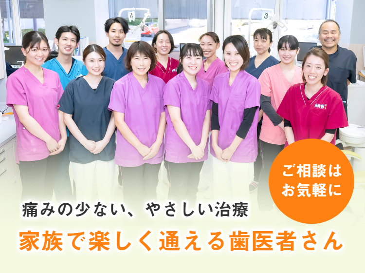 スタッフ全員で心がけているのは、患者さまの立場に立ってお話を伺う、親身な対応です。お子さまからご高齢の方まで、ご家族皆さまのお口の健康を、生涯にわたってサポートします。