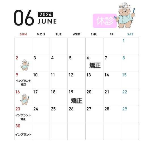 矯正:6月6日(木)・9(日)・19日(水)・23日(日)