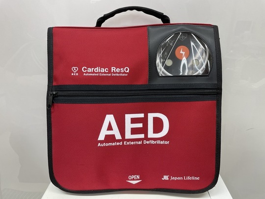自動体外式除細動器。万が一の事態にも迅速に対応いたします。