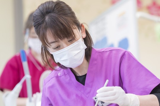 定期メインテナンスでは、担当の歯科衛生士が歯のクリーニングを行ったり、ご家庭での歯磨き方法について指導したりしています。毎回同じ歯科衛生士が患者さまを担当しますから、お口の中の些細な変化にも気づきやすく、ますますきめ細やかなケアを実現できる仕組みです。